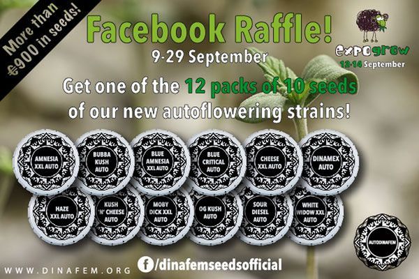 - Zum dritten Mal in Folge sticht Dinafem als Sponsor der Messe Expogrow 2014 hervor, die vom 12. bis 14. September in dem Messekomplex von Ficoba in Irun (Baskenland) stattfindet. Und da wir gerne feiern, wollen wir die Treue unserer Anhänger mit einer einzigartigen Verlosung belohnen. Wir verlosen 12 Pakete mit den neuen Autoflowering-Sorten von AUTODINAFEM. Wir erklären dir, wie du teilnehmen kannst. Es ist sehr einfach.