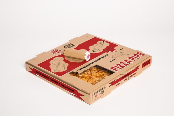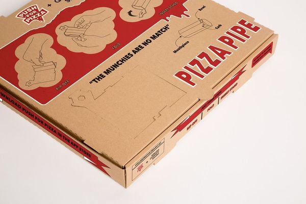 Diese auffallende Neuheit ist ein Pizzakarton, der sich in eine Hasch-Pfeife umbauen lässt. Der besagte Karton besitzt Anweisungen, wie eine bestimmte Stelle im Karton auszuschneiden ist und man so ein „Pizza-Pfeifchen“ erhalten kann. Man braucht nur eine Schere und ein bisschen Geschick.