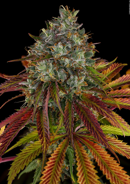 Die Pflanzen werden ihrer Indica-dominanten Natur auch äußerlich gerecht und wachsen dicht und mit dunkelgrünen Blättern heran. Diese können während der Blütephase aber auch rötlich bis purpurfarben werden und so für einen zusätzlichen optischen Reiz sorgen. Die rundlich-kompakten Buds sind am Ende förmlich überschüttet mit rauen Mengen von Harzdrüsen.