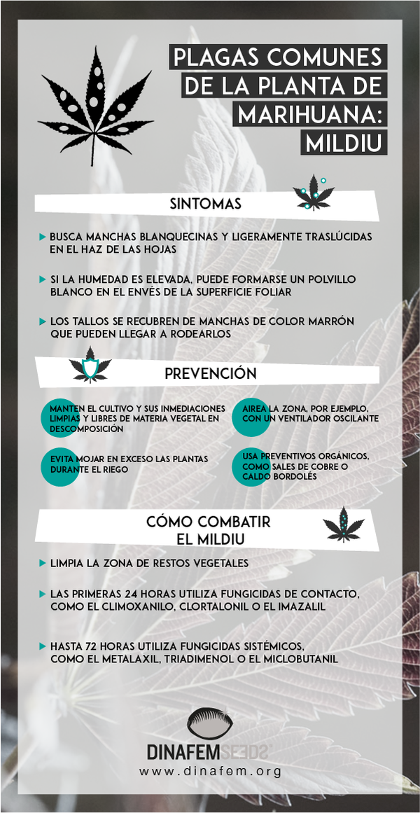Im Frühling aktivieren sich die Mikroorganismen erneut. Die Strukturen, die bis dahin geruht haben, beginnen zu sprießen, wenn die Feuchtigkeit sich erhöht und die Temperatur zwischen 10 und 25 °C beträgt. Wenn die Wärme also in der Räumlichkeit (beim Innenanbau) oder Umgebung (beim Außenanbau), in der wir den Anbau durchführen, zunimmt, beschleunigt der Mehltau sein Wachstum. Einige Elemente, die das Vorhandensein von Wasser steigern, wie Tropfbewässerungssysteme, Regen oder Tau, begünstigen die Aktivität der Krankheit zusätzlich.