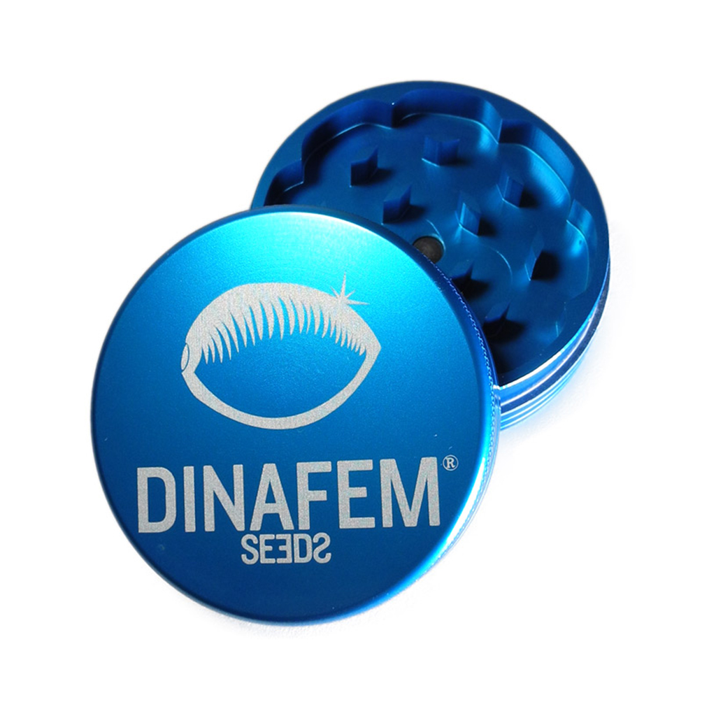 Dieser Dinafem Aluminium Grinder hat zwei Kammern und einen Deckel mit aufgedrucktem Dinafem Seeds-Logo. Ein Magnet in der Mitte sorgt dafür, dass die Dose schön abgedichtet bleibt und erleichtert das Schließen und Öffnen des Deckels.