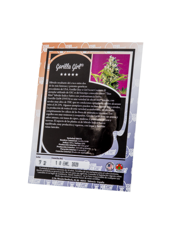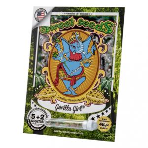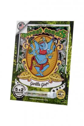 Die Gorilla Girl Hanfsamen von Sweet Seeds wurden durch die Kreuzung einer Gorilla Glue mit einer Girl Scout Cookies entwickelt. Die Hybride produziert eine gewaltige Menge an Trichomen mit hohem THC-Gehalt und wirkt damit stark psychoaktiv.