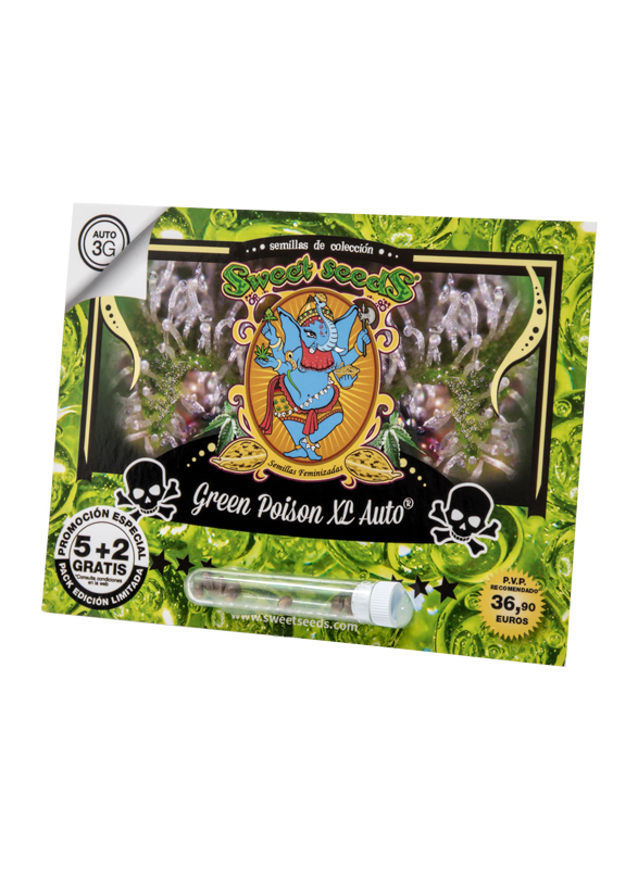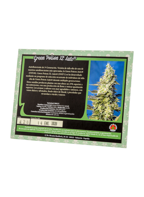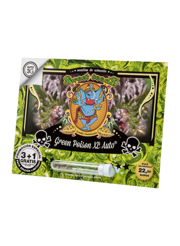 Green Poison XL Auto besitzt ein intensives süß-fruchtiges Aroma mit Skunk-, Rucola und Walnussnoten. Ihr Effekt – eine Mischung aus geistiger Stimulation und körperlicher Entspannung – ist ausgewogen und gut verträglich.