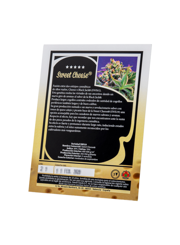 Bei den Sweet Cheese Hanfsamen von Sweet Seeds handelt es sich um eine feminisierte Cannabissorte, die aus der Fusion zweier waschechter Schwergewichte hervorgegangen ist, Cheese und Black Jack. Die Hybride mit Sativa-Dominanz besticht durch ihre hohen Erträge und ihr revolutionäres Aroma nach würzigem altem Käse – wer starke, besondere Geschmackseindrücke liebt, wird von ihr hin und weg sein!