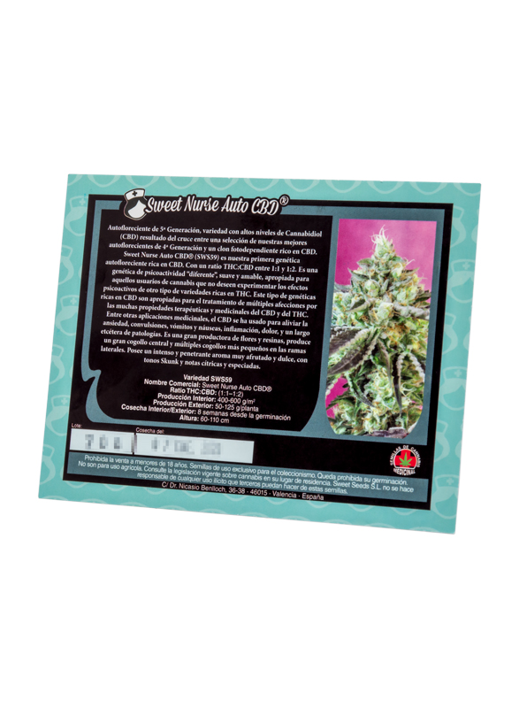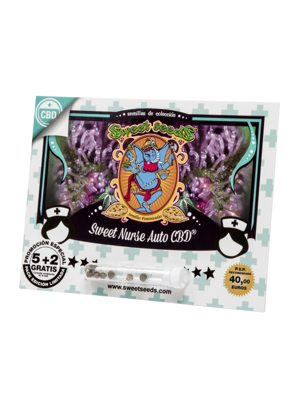 Bei den Sweet Nurse Auto CBD Hanfsamen von Sweet Seeds handelt es sich um eine feminisierte Autoflowering-Cannabissorte mit hohem CBD-Gehalt, die aus der Kreuzung einiger Sweet Seeds-„Autos" 4. Generation mit einem CBD-reichen Klon hervorgegangen ist. Neben vielen anderen Qualitäten besticht sie durch ihre großes therapeutisches Potenzial, mit dem sich zahlreiche Beschwerden lindern lassen.