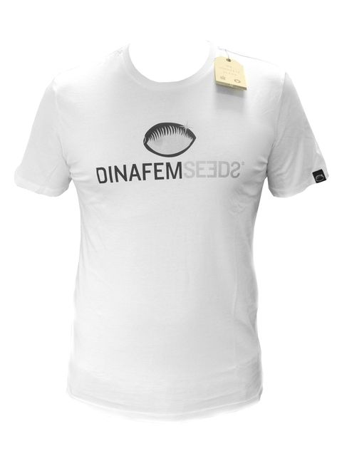 Das T-Shirt hat ein modernes Design, ist gerade geschnitten und auf der Vorderseite mit dem Logo der Dinafem Seeds-Samenbank in Brusthöhe verziert. Der charakteristische Dinafem Seeds-Samen findet sich auch auf einem kleinen Schildchen am linken Ärmel wieder.