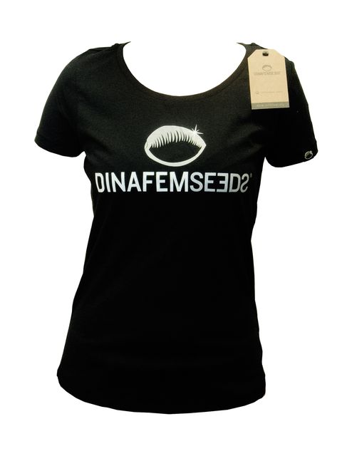 This tight-fit, modern-design t-shirt is decorated with a big logo of the seed bank Dinafem Seeds on the front of it. The left sleeve has also the characteristic seed of Dinafem Seeds.