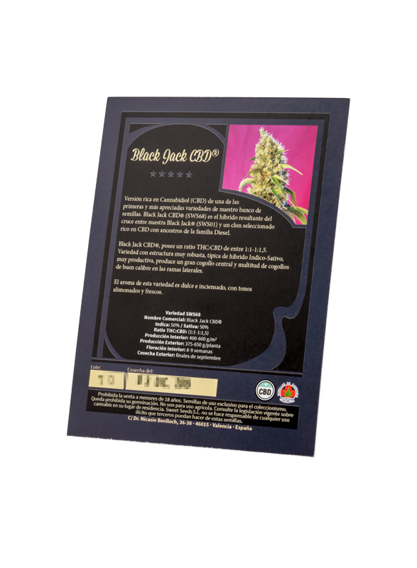 Black Jack CBD marijuana seeds by Sweet Seeds have been obtained by crossing a Black Jack and a selected clone with Diesel genetics and belong to a top-yielding, homogeneous and stable hybrid with an intense, uncommon aroma.