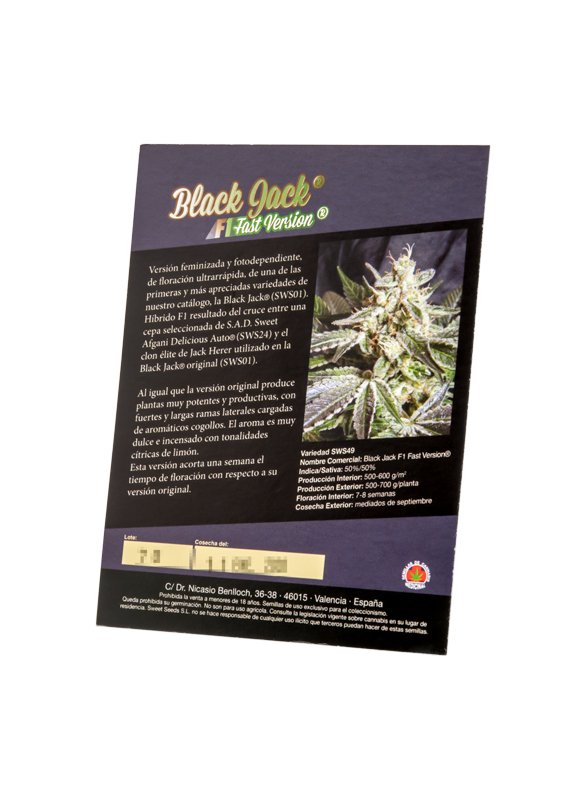 Black Jack Fast Version is a good option for several reasons: it is an outstanding, fast-flowering, easy-to-grow, hardy plant that grows strong and yields generous amounts of wonderful buds with lots of resin. Its height tends to be short and it performs well both indoors, where it fits perfectly in small spaces, and outdoors in the open air or in a greenhouse.