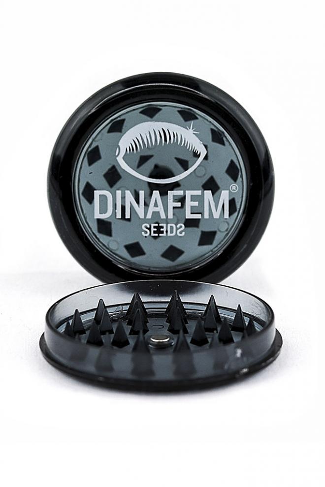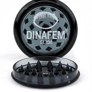 Dinafem Grinder is a grass shredder equipped with a central magnet allowing the lid to remain fully seated. Has pyramidal teeth that achieves the desired grinding.The Dinafem Grinder is made of durable plastic and includes black colored logo on the lid.