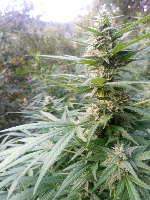 In October, we were met by bushy plants with a height of 1.5 metres that were loaded with aromatic resin. We flushed the soil and stopped all irrigation during the last week of cultivation to accelerate the drying process after harvesting, which we carried out on 15 October. Despite the reduced number of hours of light that the plants were exposed to (when we chose our location, we prioritised discretion over light exposure), the buds were compact and highly resinous, with deep notes of fruit, milk and honey on the nose, and pinewood hues with red berry touches on the palate.