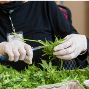 Common among small growers, wet trimming is the preferred choice of large-scale producers as it allows to process large amounts of flowers in little time, while ensuring a healthy, mould free final product. Trimming in wet conditions involves removing the leaves immediately after cutting down the plants, when the water content is still high. Frequently, this is performed with the aid of a machine trimmer that has been specifically designed for large-scale cannabis production. Many growers in the industry, however, prefer to have specialist workers do the work manually.