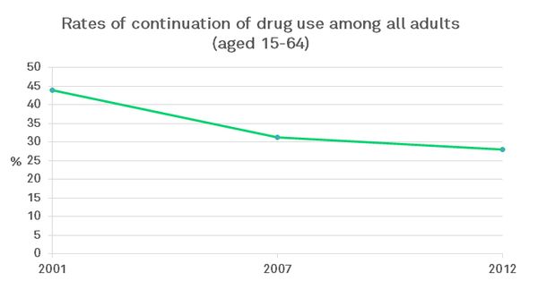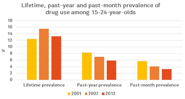 The overall assessment has been positive with regard to the interests of authorities. The number of marijuana consumers aged between 15 and 64 has dropped over the period, during both the initial stage (up until 2007) as well as the latter stage (up until 2012).