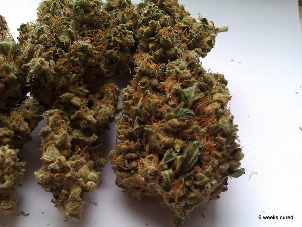 PHYSICAL EXAMINATION COMMENTS: This bud has an excellent bag appeal with some lovely and very dense snow-covered buds. When ground up it gives off a lovely skunk/hash smell and it still remains very sticky to the touch. When looked at under the scope, this strain looks amazing, its trichomes having very long stems and really large heads.