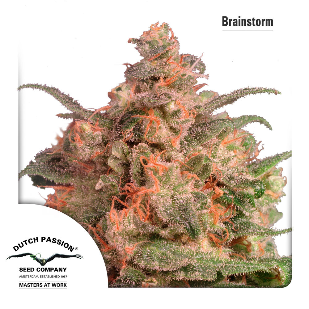 Brainstorm cannabis seeds by Dutch Passion belong to a feminised cannabis strain that originates from the cross of a Northern Lights #5 x Haze and a selected Haze. The result is a Sativa-dominant hybrid noted for its heavy-yield and fairly high potency.