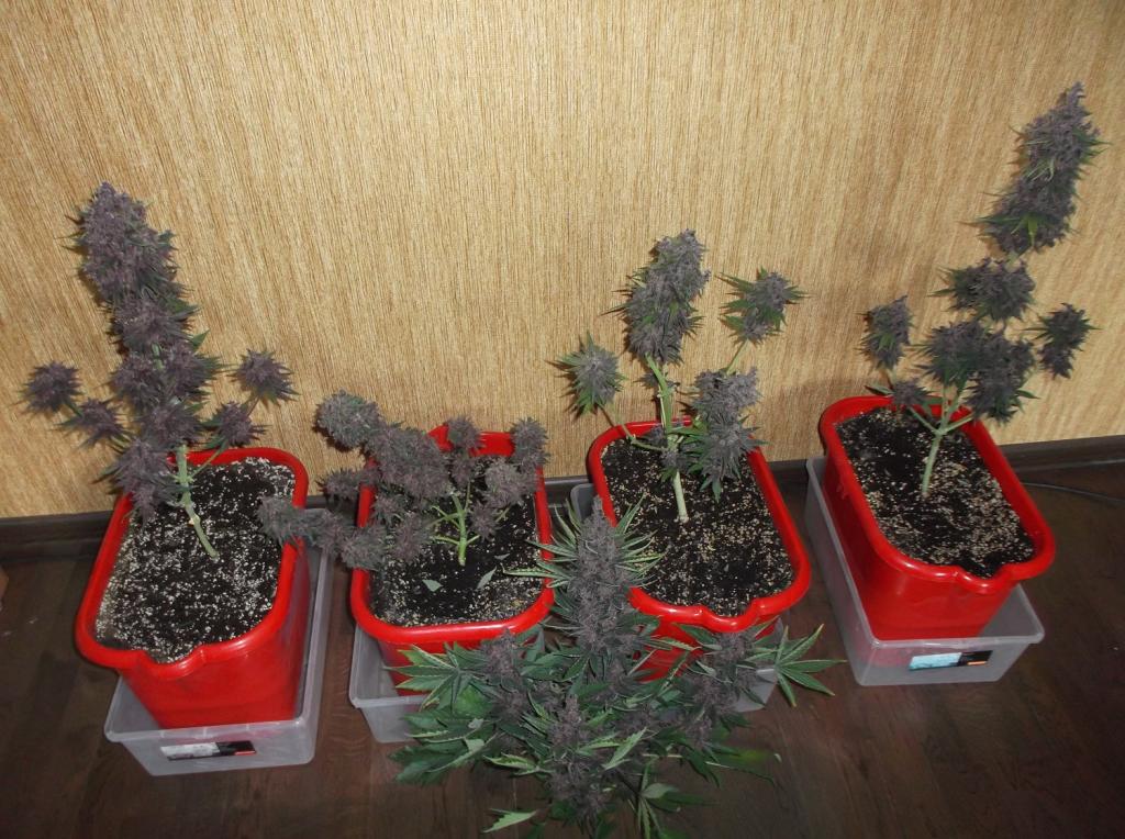 I was growing this nice plant under continous lightning 24/0. Plant was topped and SCRoGed, so it reached only 18cm height.it was microgrow under 27,5watt led grow light. Harvest was 17,6g (0,64g/watt, 58%RH) of beautiful dark purple,almost black buds. Flavour is sweet lemon with hints of spice. -