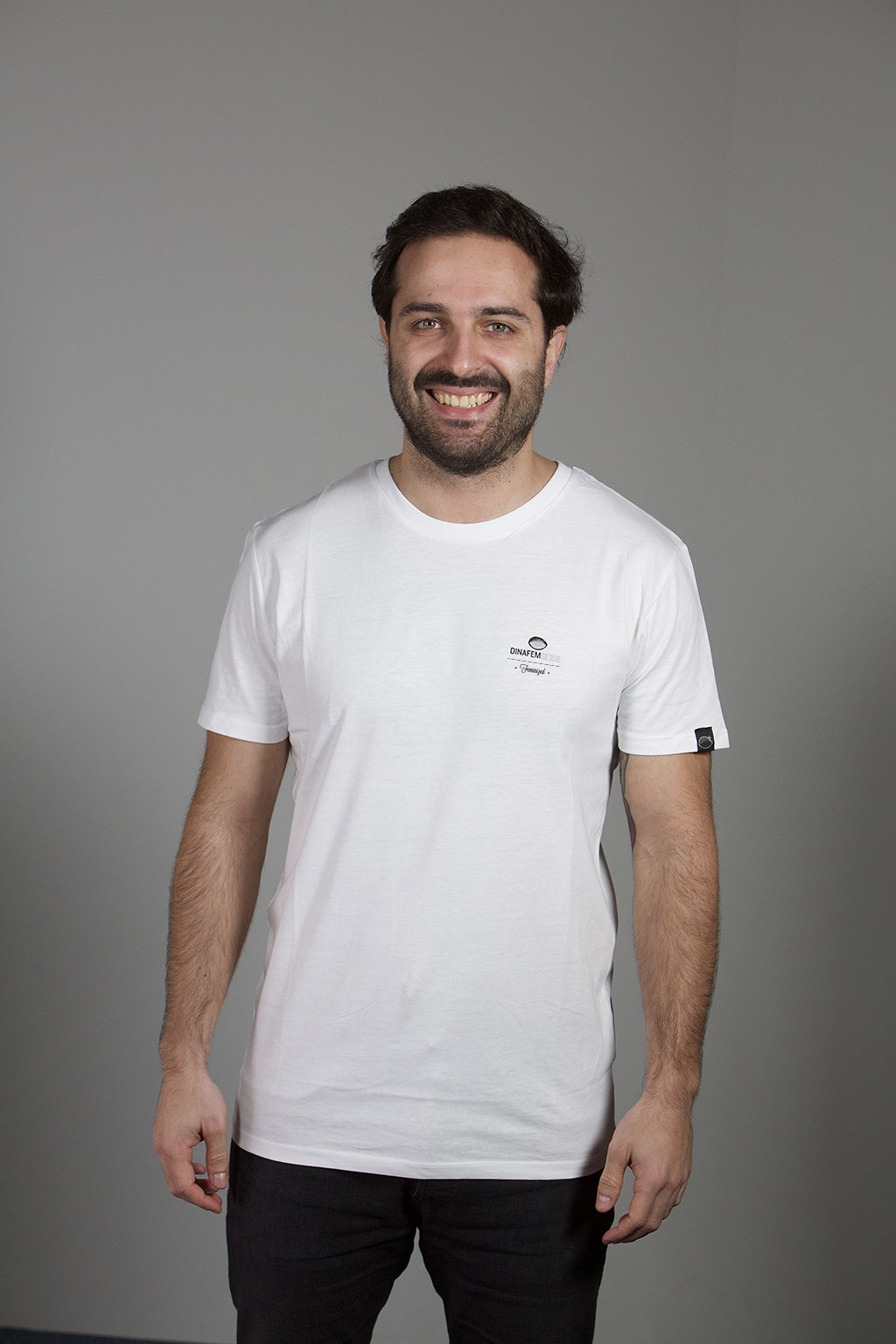 This straight-cut, modern-design t-shirt is decorated with a small logo of the seed bank Dinafem Seeds and the word "Feminized" in the upper left side of it. The left sleeve has also the characteristic seed of Dinafem Seeds.