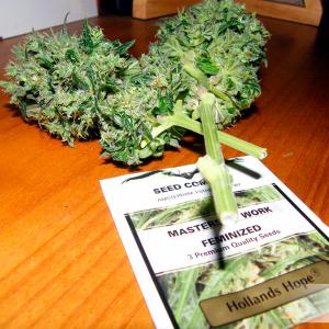 Hollands Hope cannabis seeds evolve into beautiful small/mid-sized marijuana plants that yield bumper crops of fat and thick buds overflowing with resin in a remarkably short time. Noted for its resistance to mildew, it is sure to be ready for harvest in late September/early October.