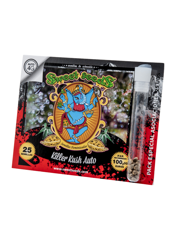 Killer Kush Auto cannabis seeds by Sweet Seeds belong to an Indica-dominant, feminized, autoflowering cannabis strain that derives from the cross between OG Kush and a 3rd generation Auto. It is a really vigorous hybrid that produces big amounts of potent and high-quality resin in a remarkably short time.