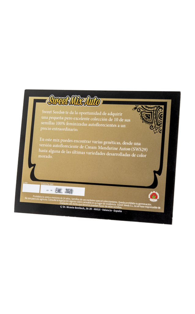 Sweet Mix Auto by Sweet Seeds is an assortment of 10 different feminized autoflowering strains. It offers the possibility of growing different autoflowering strains at once in order to obtain different aromas, flavours and effects.
