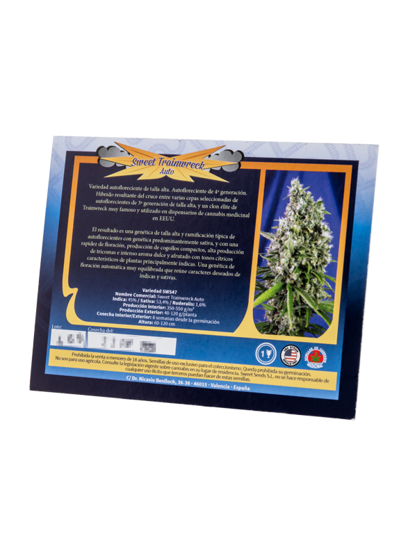 Sweet Trainwreck Auto was created to offer a complex, balanced auto at all levels. It is a superb, fast-flowering, easy-to-grow, strong plant that yields good amounts of elongated, resinous buds. It fits into small indoor spaces and goes unnoticed outdoors. It is the autoflowering version of the Trainwreck, renowned and much appreciated in the US.