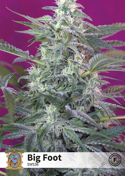 Big Foot desarrolla una espectacular planta de marihuana con estructura de híbrido Indica/Sativa, con tallo fuerte y numerosas ramas laterales. Produce un gran cogollo principal y multitud de cogollos en las ramas secundarias. Se trata de una gran productora de cogollos compactos cubiertos de abundante resina muy aromática.