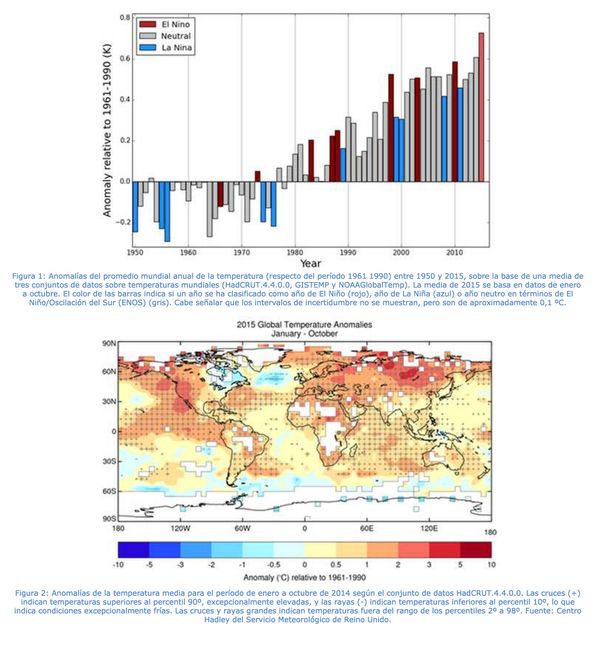 - 2015 va camino de convertirse en el año más cálido del que se tiene constancia, lo que obedece a la combinación de un intenso episodio de 'El Niño' con el calentamiento de la Tierra provocado por la actividad humana.