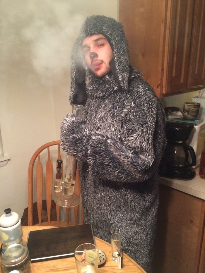 La pequeña pantalla también es un buen lugar donde rebuscar ideas para dejar huella en estas fiestas. Atentos a este disfraz de Shaggy y Scooby, que pilla perfectamente el punto fumeta de la famosa serie de dibujos animados. O al del perrete Wilfred, un hombre disfrazado con un traje de perro pero que el resto de personas tan solo ve como un perro. Y sin olvidarnos de Towelie, de South Park, que puede resultar un concepto muy abrigado para estos días invernales, pero que también nos hace preguntarnos: ¿cómo diantres fumas dentro de ese traje?