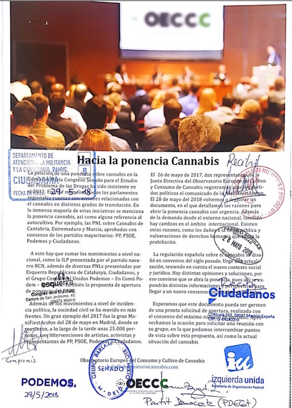 Actualmente la mayoría de parlamentos regionales cuentan con acciones y propuestas relacionadas con el uso del cannabis. Además, en la inmensa mayoría de estas iniciativas se menciona la necesidad de abrir el debate en Congreso y Senado: es en el ámbito nacional donde residen las competencias para adoptar una regulación completa y efectiva del cannabis. De momento la iniciativa del Observatorio ha sido recibida positivamente por los representantes de PP, PSOE, Podemos, Ciudadanos, PNV, PDeCat, ERC, IU, Compromís y Grupo Mixto del Senado.