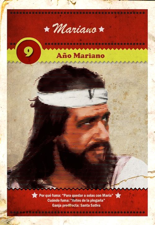 'Año Mariano' es una película española donde su personaje principal y gran fumeta de la ficción, Mariano, se estrella ebrio con su coche en una plantación clandestina de marihuana que está a punto de ser calcinada por la Guardia Civil. El colocón que se coge es tan grande que al día siguiente una procesión de religiosos lo toma por santo. Mariano necesitará de todas las influencias gánjicas para guiar a sus devotos fieles hasta el paraíso terrenal. A solas con María…y tanto.