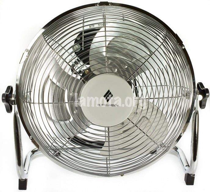6) Ventilador de suelo: sirve para remover eficazmente el aire que se encuentra cerca del suelo. Se utiliza principalmente en las salas de cultivo grandes con el objetivo de dinamizar los movimientos del aire en áreas de dimensiones importantes. Es preferible elegir un aparato ligeramente sobredimensionado en su diámetro para poder utilizarlo a mayor distancia. A menudo están provistos de varias velocidades, lo que permite adaptarlos a las salas de cultivo en función de su tamaño.