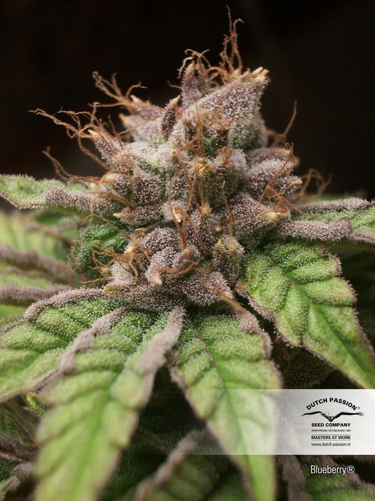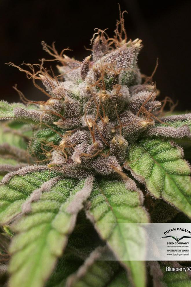 Las semillas de marihuana Blueberry de Dutch Passion representan una variedad de cannabis feminizada, cuyo origen es el cruce de variedades de Colombia, Panamá, México y Tailandia. Estamos ante una variedad con dominancia Indica, original de los años 70, sofisticada y agradable que combina sabores afrutados y coloraciones azules en las hojas y en los cogollos.