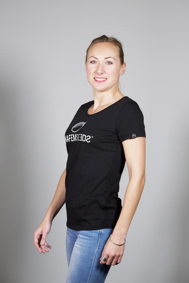 La camiseta tiene un diseño muy actual, con corte entallado, y está decorada con el logo del banco de semillas Dinafem Seeds impreso en la parte central delantera. En la manga izquierda lleva bordada la característica semilla del banco de semillas Dinafem Seeds.