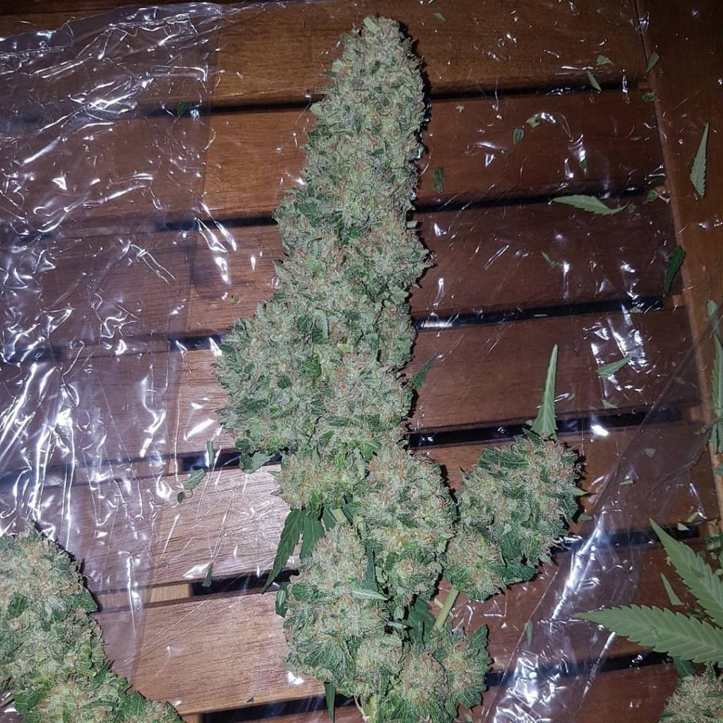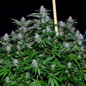 Es una de la variedad que mas me gusta y la mas bestial, casi 5 metros de alto con una envergadura enorme, plantada el dia 15 de abril " EN TIERRA" y cosechada el dia 22 de septiembre y con 2,2 kg de cogollos enormes y resinosos, si tienes oportunidad de sembrarla en tierra no te arrepentiras -