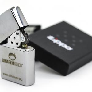 Se trata del mítico mechero, fabricado en USA desde 1932 y conocido en el mundo entero por su peculiar diseño que hace imposible que se apague incluso con el viento y la lluvia, para apagarlo es necesario cerrar la tapa.