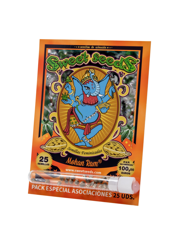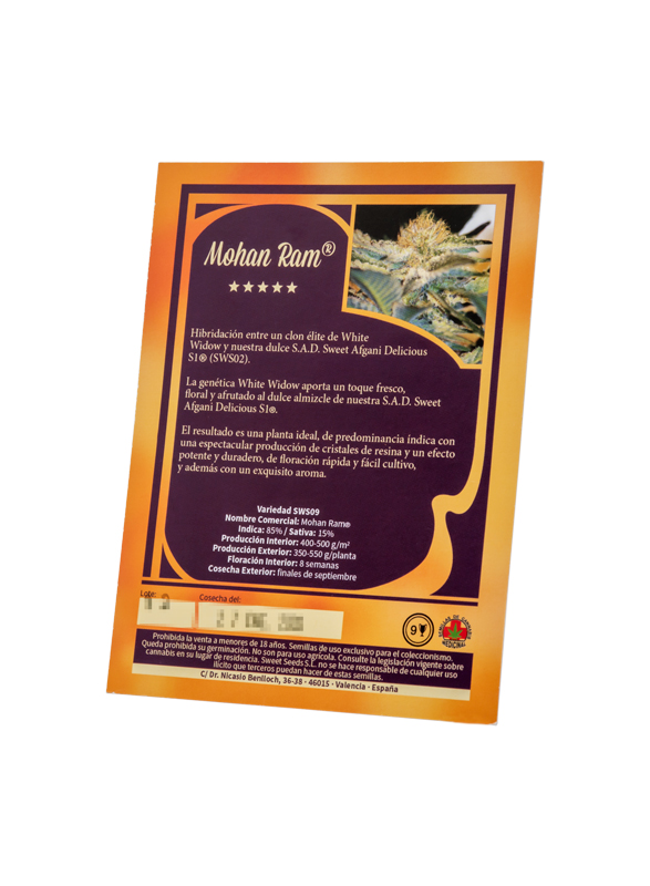 Mohan Ram de Sweet Seeds es una semilla de marihuana feminizada cuyo origen es un cruce entre una White Widow y una Sweet Afghani Delicious S1. Se trata de una preciosa planta de marihuana con dominancia Indica, súper productora de resina de gran calidad.