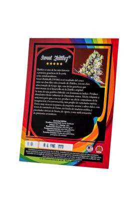 Sweet Zkittlez es un híbrido con dominancia Indica que desarrolla una planta súper productora de flores repletas de resina. Es una planta que seduce a todos con su riqueza de terpenos: huele y sabe a frutas dulces con notas a madera, a pino y a limón, con toques sutiles de pimienta.