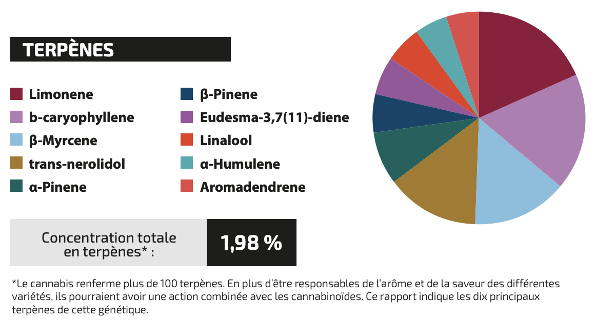 - Nous avons demandé à nos techniciens de laboratoire de trouver l'explication de son succès grâce à l'analyse des terpènes et des cannabinoïdes. Nous allons vous tout vous expliquer.