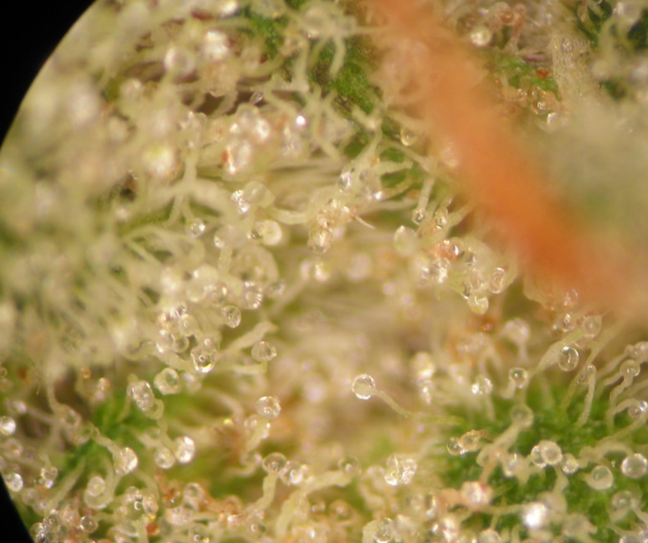 - Trichomes transparents : à ce stade, ils ressemblent à de petites gouttes de cristal. La plante n'a alors pas encore atteint son pic de maturité et la production de cannabinoïdes, en particulier de THC, est faible. Récolter à ce moment donne un effet très doux, presque nul, ou une sensation cérébrale et fugace.