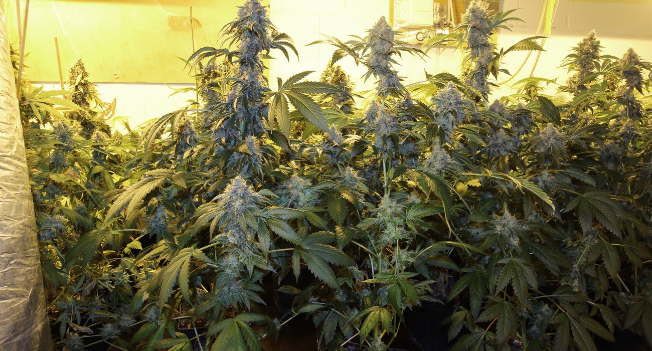 Cloudz si è procurato una confezione da cinque semi femminizzati di Dinachem e, una volta germinati nei jiffy, il che è successo piuttosto in fretta, gli ha spostati, insieme a delle piantine di Bubba Kush e di OG Kush, in vasi da 11 litri riempiti con terra. Durante il periodo vegetativo, il quale si è prolungato per quattro settimane, il coltivatore gli ha fornito 18 ore di luce al giorno con una lampada HPS da 600 watt, permettendo alle piante di sviluppare una forte struttura di rami così come foglie verde scuro in stile indica. Già in questa fase è apparso evidente che Cloudz avrebbe finito per raccogliere due fenotipi diversi, in quanto due delle Dinachem hanno dimostrato una crescita più marcata rispetto alle altre tre, mettendoci anche di più a formare i primi rami.
