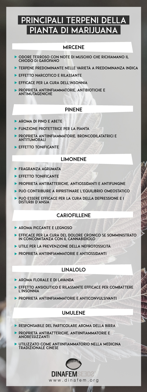 - In questo post vi riassumiamo i punti chiave per poter interpretare l’analisi di qualsiasi varietà di Dinafem, quindi, vi spieghiamo a cosa prestare attenzione per capire il profumo e il sapore di una particolare genetica di cannabis e come fare per prevederne l’effetto.