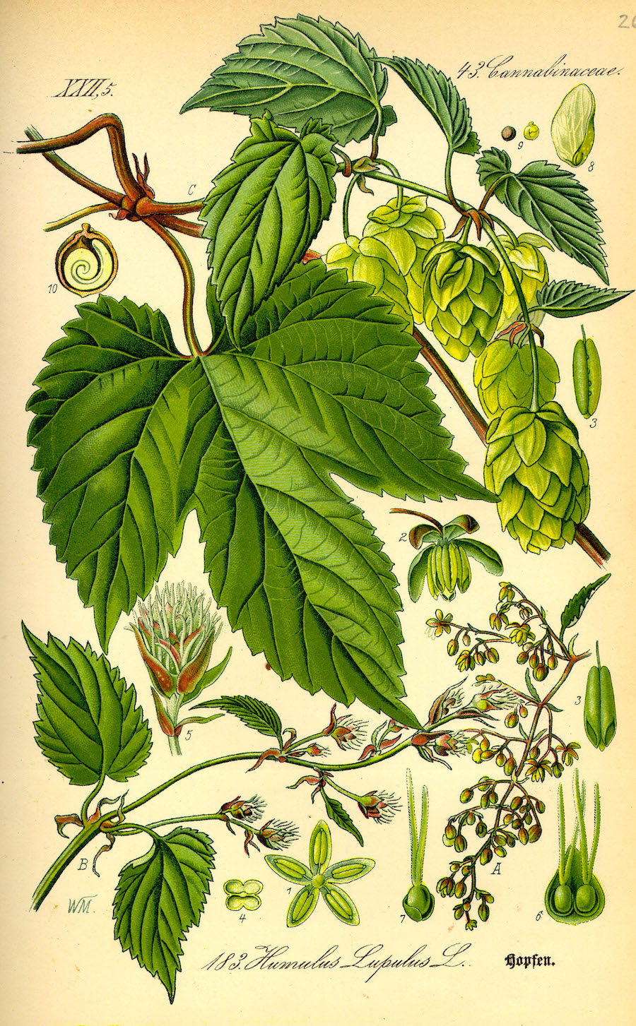 Ma le similitudini non si fermano alle foglie. Così come la cannabis, anche l'Humulus lupulus sviluppa individui maschili e femminili differenziati (noti come dioici) e soltanto i fiori delle piante femminili (noti come luppoli) vengono utilizzati per la produzione di birra. Ovviamente, presentano anche delle differenze morfologiche: