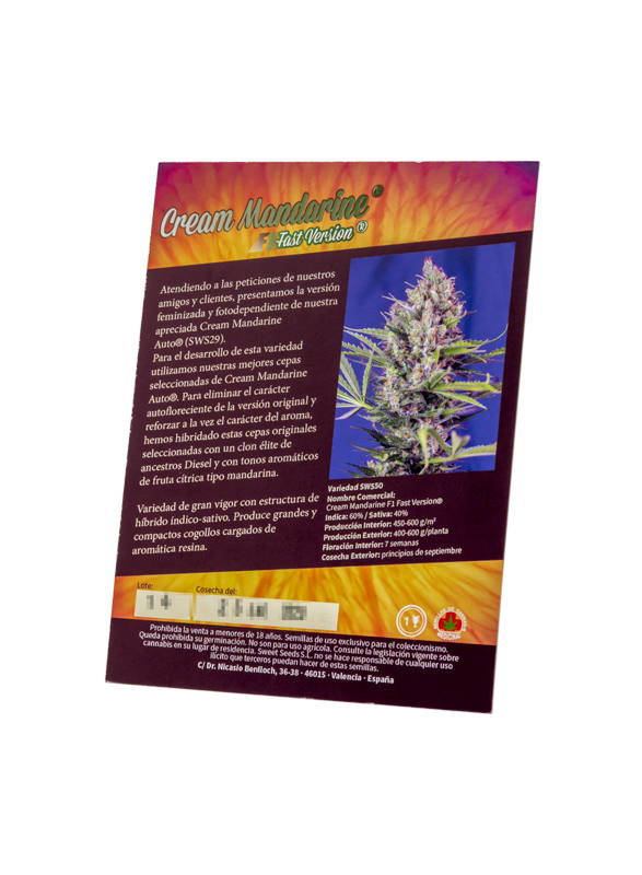 Las semillas de marihuana Cream Mandarine Fast Version de Sweet Seeds son una variedad de cannabis feminizadas con dominancia Indica que proceden de la unión entre una Cream Mandarine Auto y una Diesel. Se trata de un híbrido de gran calidad que permite a los amantes de esta variedad genética obtener plantas de tamaño y producción superiores.