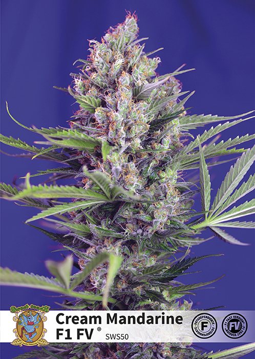 Cream Mandarine Fast Version es una magnífica planta de marihuana de estatura media, fácil de cultivar, con floración corta y vigorosa que produce cogollos largos, pesados y compactos cubiertos de resina. Es una variedad de cannabis apta para cultivadores de todos los niveles ya que permite obtener una abundante cosecha de calidad de forma sencilla y rápida. Su intenso aroma a cítricos resulta muy agradable.