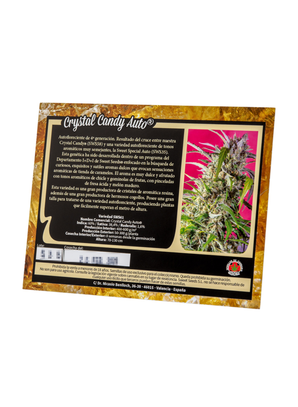 Las semillas de cannabis Crystal Candy Auto se desarrollan a la perfección en espacios reducidos de interior o discretamente en exterior. Una vez pasadas 8 semanas desde su germinación, todo el mundo verá sus esfuerzos recompensados con un producto final de alta gama.