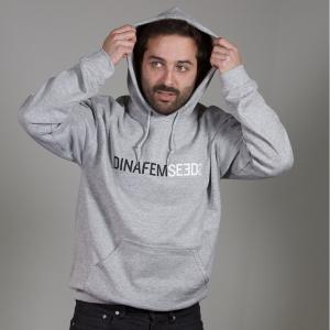 Felpa Dinafem colore grigio con le lettere in bianco e nero. La felpa presenta un design dal taglio comodo e moderno ed è prodotta in tessuto 100% cotone di alta qualità. Disponibile nelle taglie  M, L, XL e XXL. Leggi tutto >