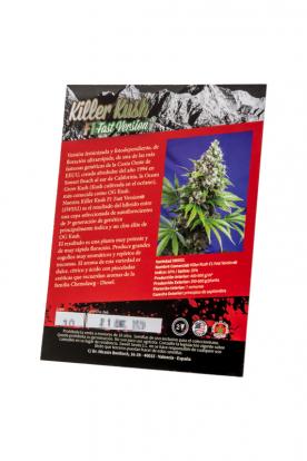 La semilla de marihuana Killer Kush Fast Version no es más que la versión de floración rápida de la ya conocida OG Kush. Se trata de una maravillosa planta de marihuana de pequeña estatura, fácil de cultivar, con floración corta y vigorosa que produce cogollos gruesos y compactos repletos de reluciente resina. Las cualidades aromáticas y gustativas de esta variedad ofrecen una complejidad llena de exotismo.
