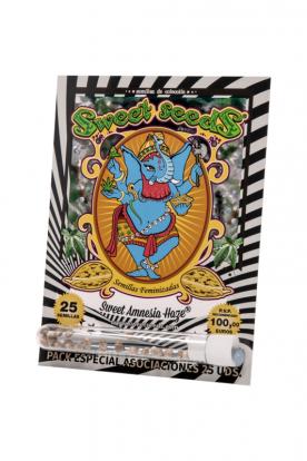 I semi di canapa Sweet Amnesia Haze di Sweet Seeds appartengono a una varietà femminizzata derivata dall'incrocio tra due cloni selezionati di Amnesia Haze. Il risultato è un ibrido Haze a predominanza Sativa nota per la sua produttività e per la sua velocità.